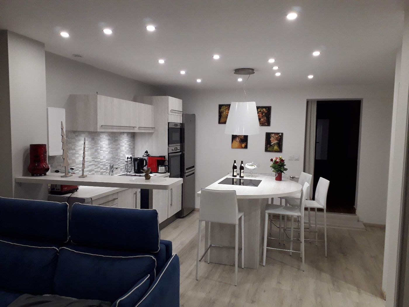 Il se compose de 3 pièces : un salon salle de loisirs, une belle cuisine entièrement équipée , ouverte sur un coin canapé téléviseur, et une chambre .