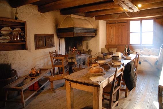 Le village a conservé son organisation en quartiers, typique des villages de montagne qui possédaient tous leur four à pain (trois subsistent aujourd’hui), leur fontaine et leurs croix de missions érigées en hommage aux missionnaires venus évangéliser ce territoire reculé. L’habitat exprime aussi l’adaptation nécessaire à la vie en haute altitude. Le rez-de-chaussée, construit en murs de schiste très épais est surmonté d’une sorte d’auvent fait de troncs de mélèze empilés et croisés aux angles, appelé « fuste » et servant autrefois à abriter le fourrage. Attenant à ce premier espace, le « caset », tout en pierre et plus petit, abritait sous le même toit famille et bêtes.